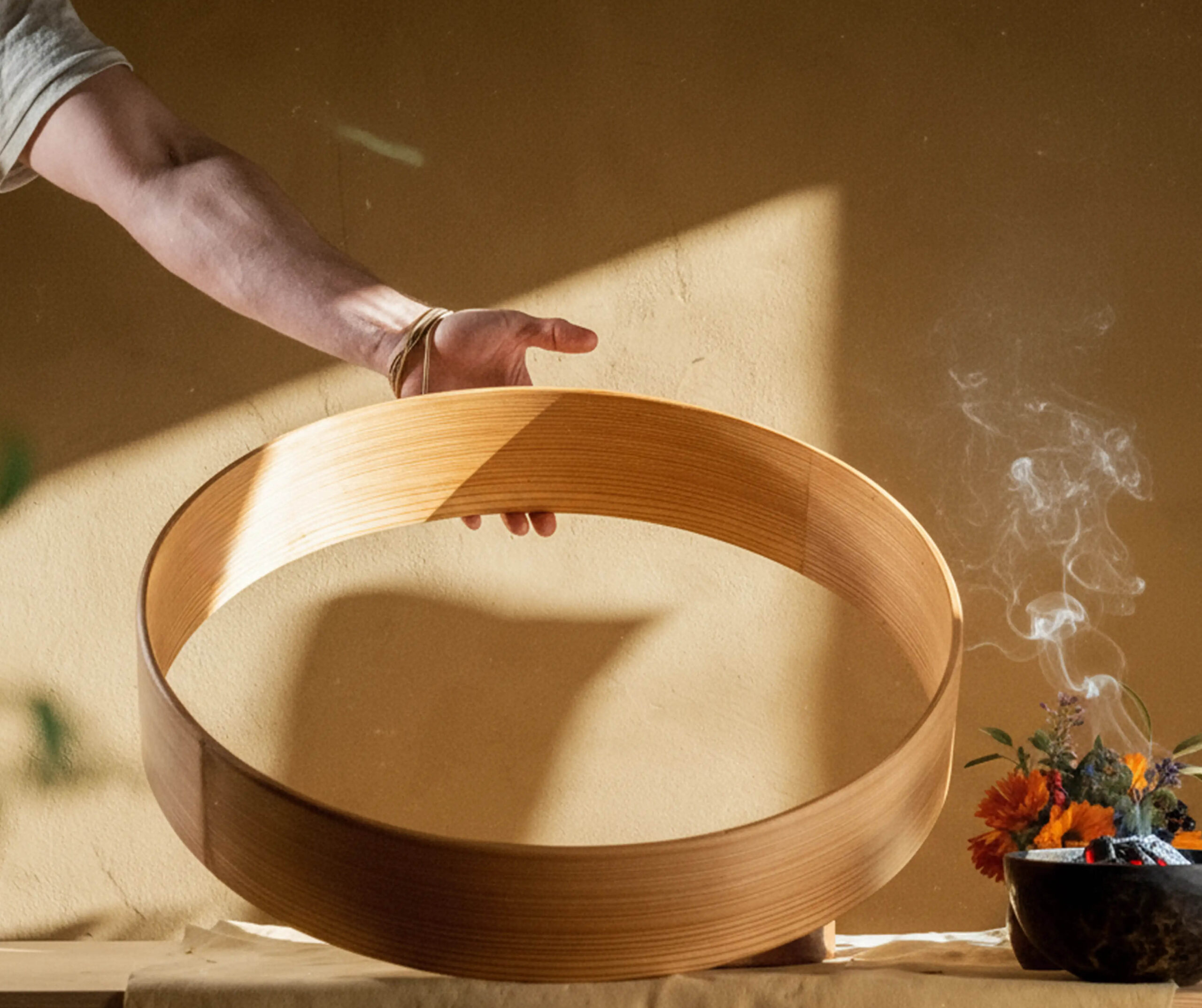 Erschaffe dein eigenes Instrument im rituellen Kreis. In achtsamer Handarbeit verbindest du dich mit Holz, Fell und Geist.